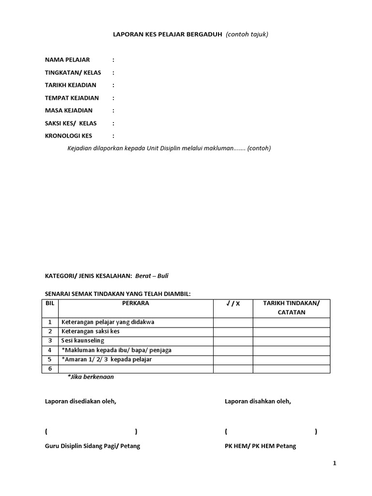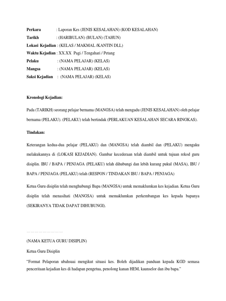Format Laporan Kes Kemalangan Murid Laporan Kemalangan Di Kawasan Sekolah Laporan Awal Kes Kejadian Tajuk Perkara Kemalangan Melibatkan Kecederaan Course Hero