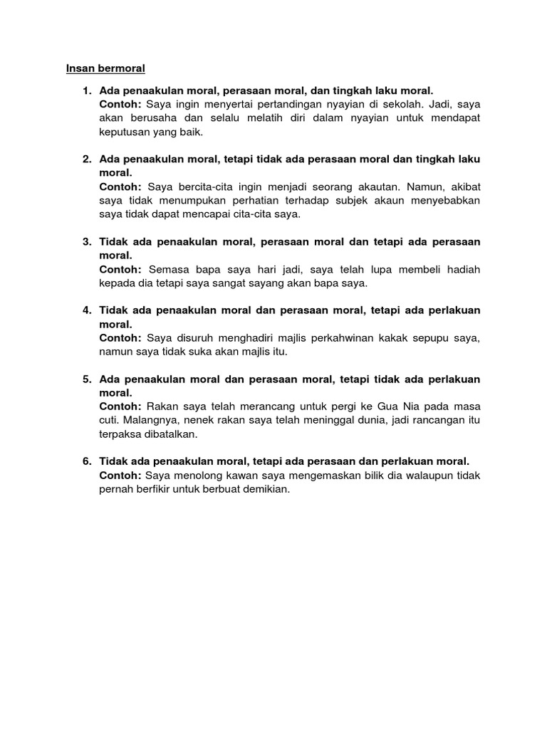 Contoh Tingkah Laku Bermoral Tingkatan 1