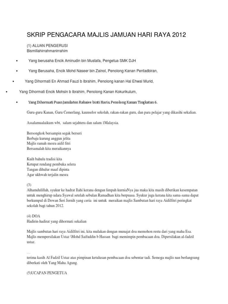 Doc Skrip Pengacara Majlis Jamuan Hari Raya 2017 Dean Ys Academia Edu