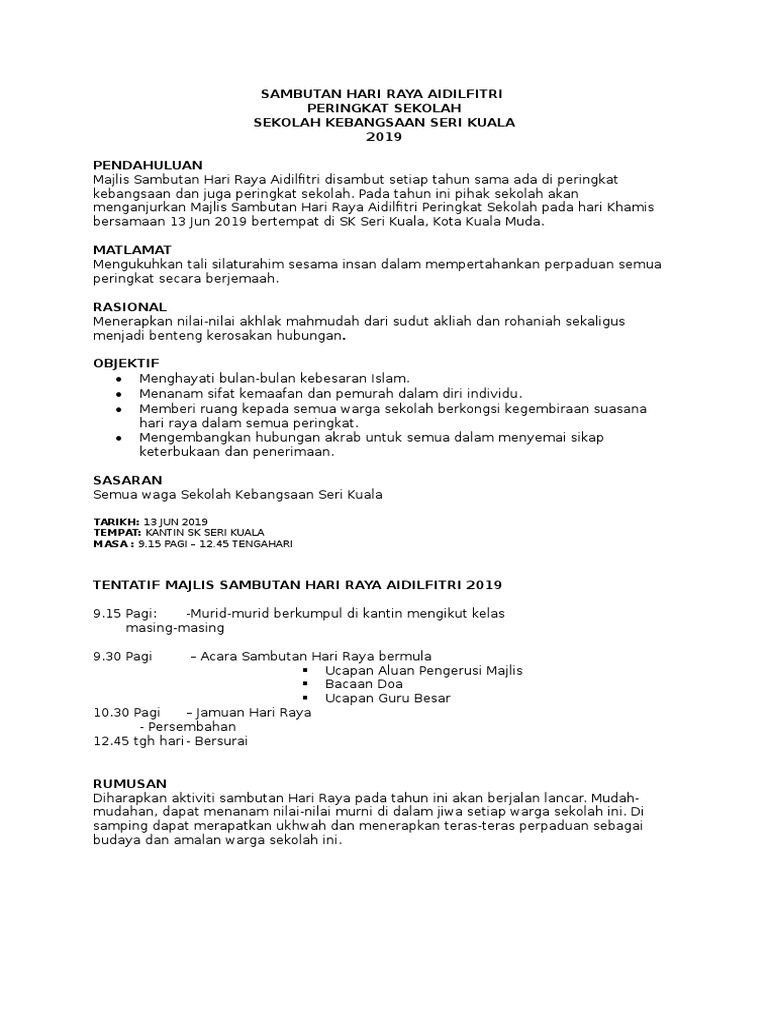 Doc Kertas Kerja Sambutan Aidil Fitri Dan Jamuan Hari Raya 2014 New Suziela Abdul Rahman Academia Edu