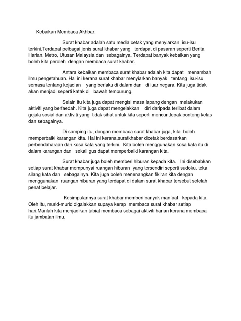 Cikgu Sabar Mohd Karangan Tingkatan 3 Faedah Membaca Surat Khabar