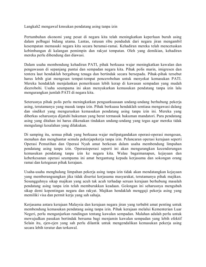 Langkah2 Mengawal Kmsukan Pendatang Asing Tanpa Izin