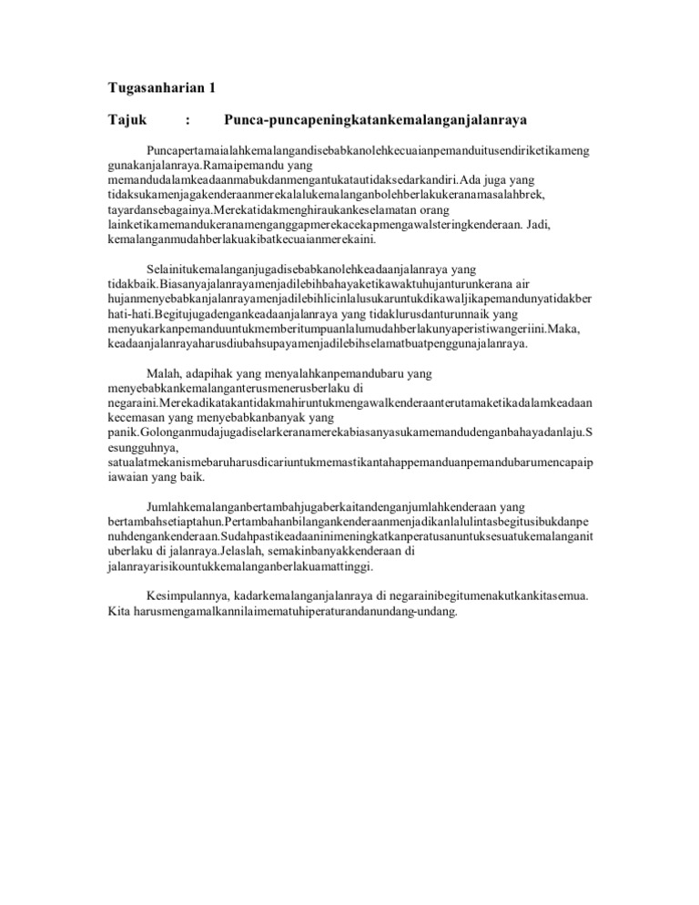 Langkah Langkah Mengatasi Kemalangan Jalan Raya Karangan Spm