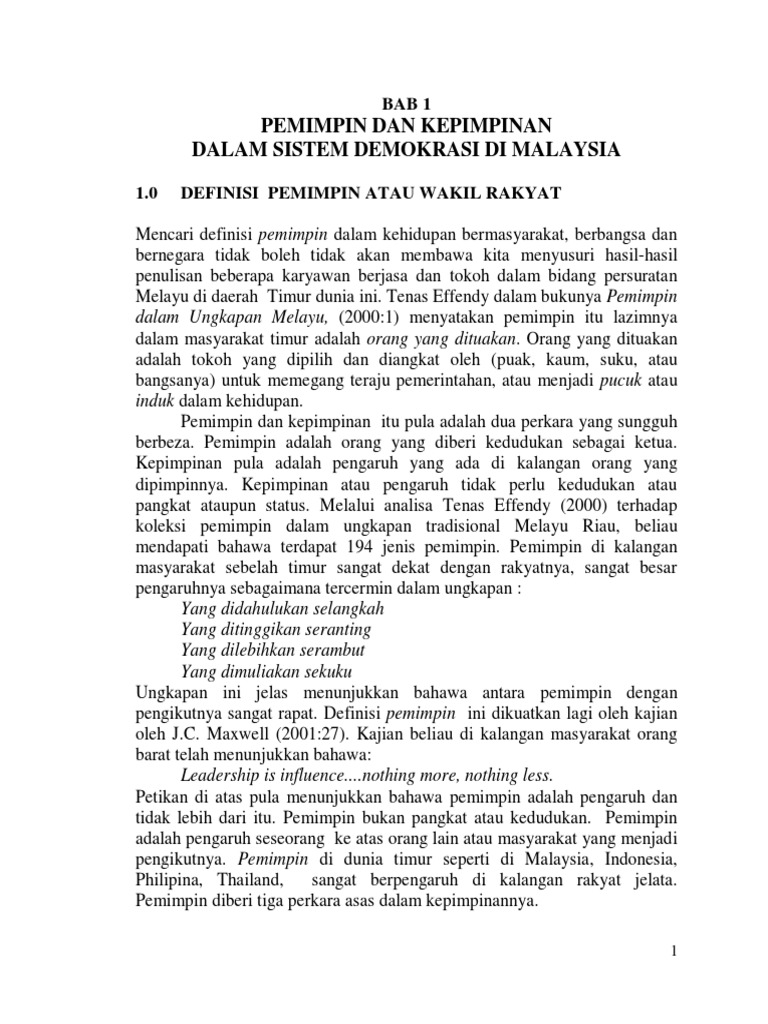 Bab 1 Pemimpin Dan Kepimpinan Dalam Sistem Demokrasi Di Malaysia 240807