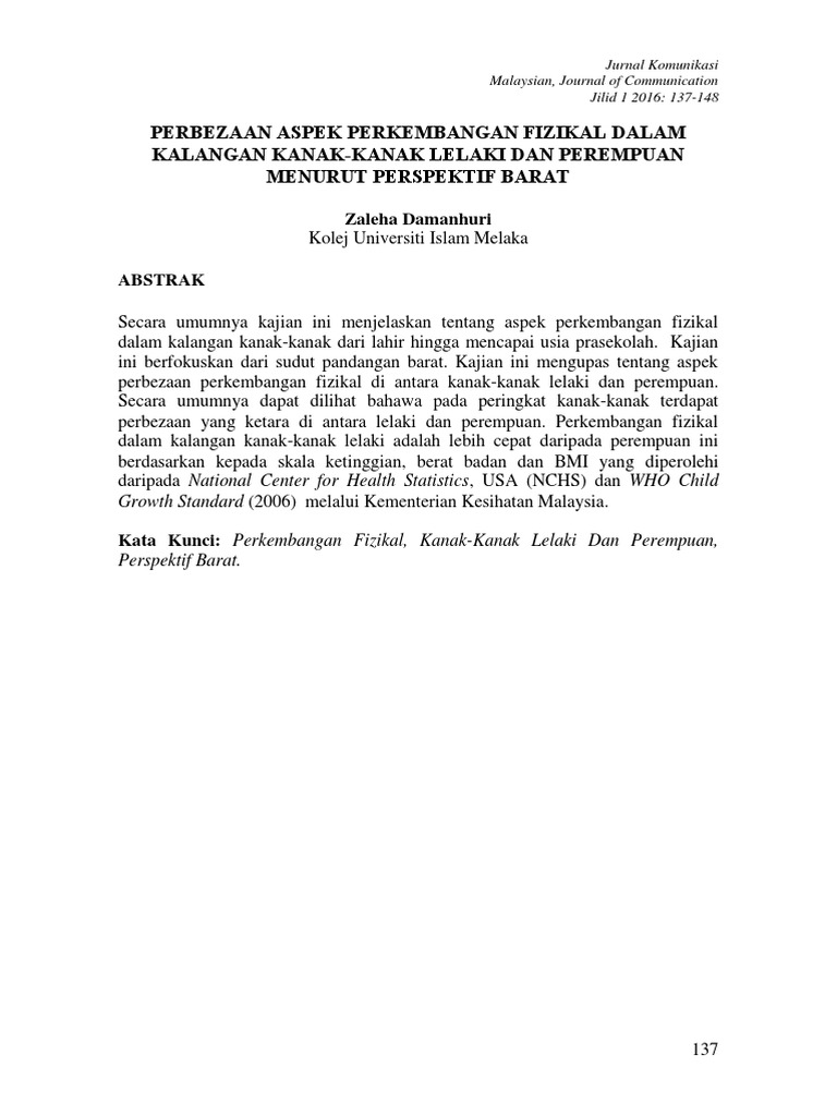 Perbezaan Perkembangan Fizikal Kanak Kanak Lelaki Dan Perempuan